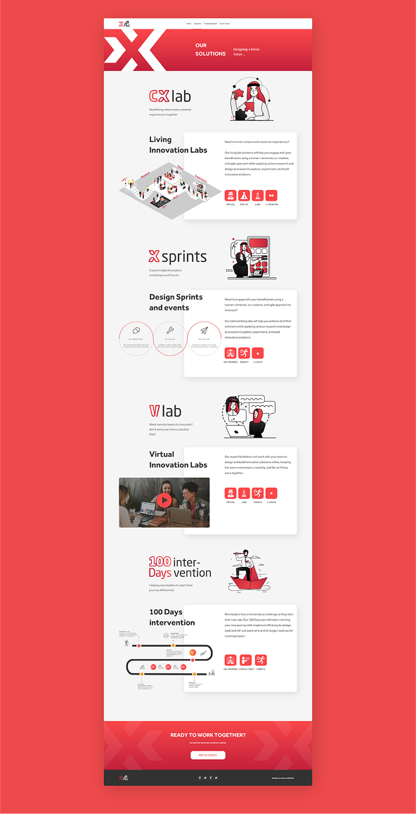 Shaped the Solutions page to showcase the full range of TAMx’s service offerings. This included key initiatives such as CX Labs, XSprints, Virtual Labs, and 100 Days Intervention Programs, providing detailed overviews to inform and inspire potential clients.